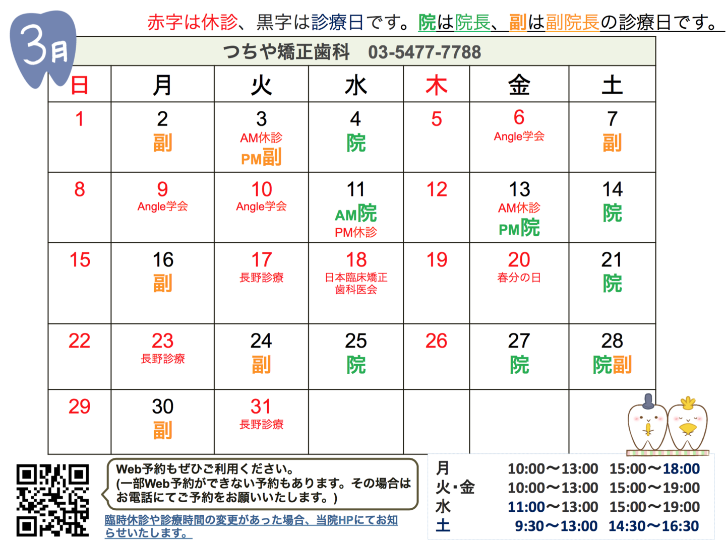 診療日や診療時間は変更になる場合がございます。必ず、下記の診療カレンダーをご確認ください。